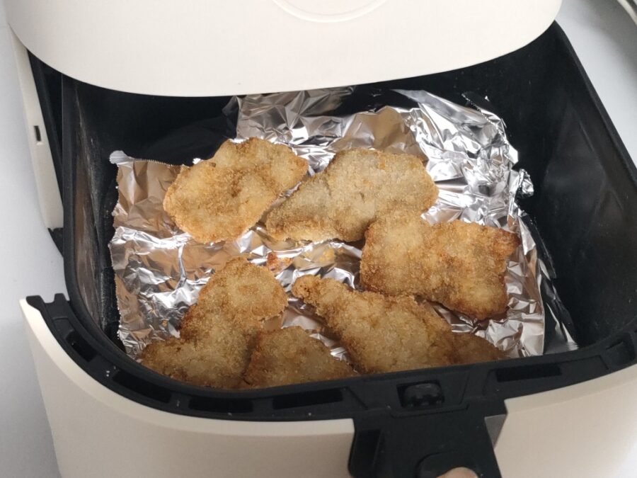実際に使ってみると、外側がカリッと仕上がって「あ、これちゃんとおいしい」と感じました。油で揚げたものとまったく同じとまでは言えません。でも、食事管理中の私には十分に満足できる仕上がりでした。