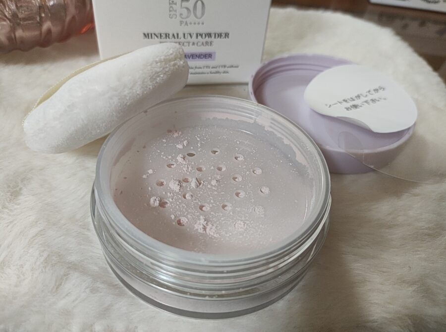 このUVパウダーは紫外線吸収剤フリーで、SPF50・PA++++の日焼け止め効果があります。